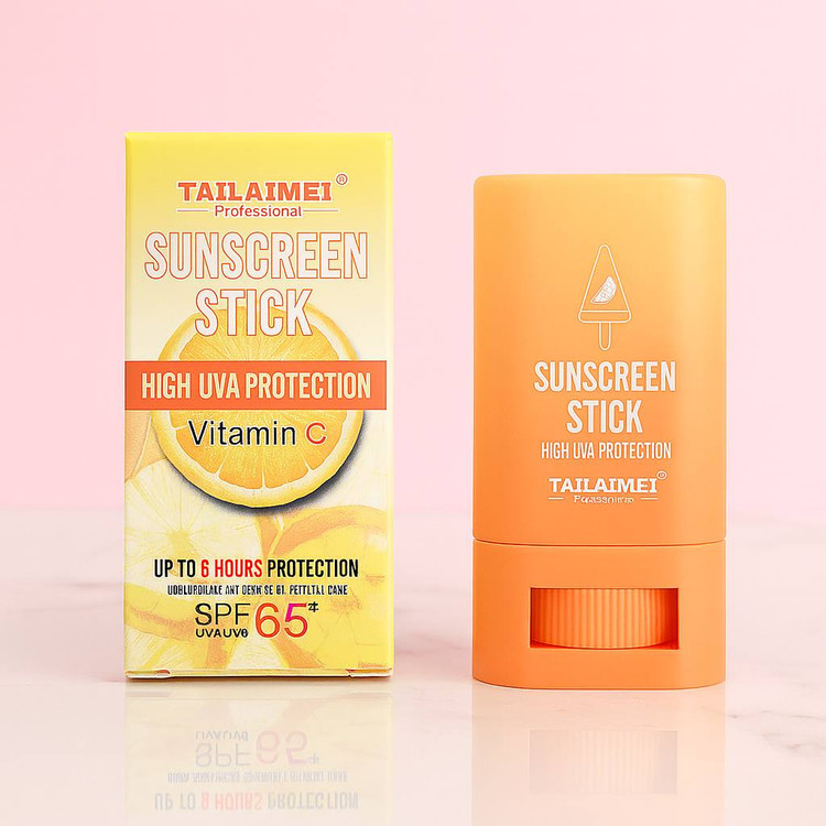 Tailaimei Sunscreen Stick با SPF 65 و فرمول غنیشده با ویتامین C، پوستتو در برابر نور خورشید و پیری زودرس محافظت میکنه، اونم بدون حس چربی یا سنگینی روی پوست! 😍