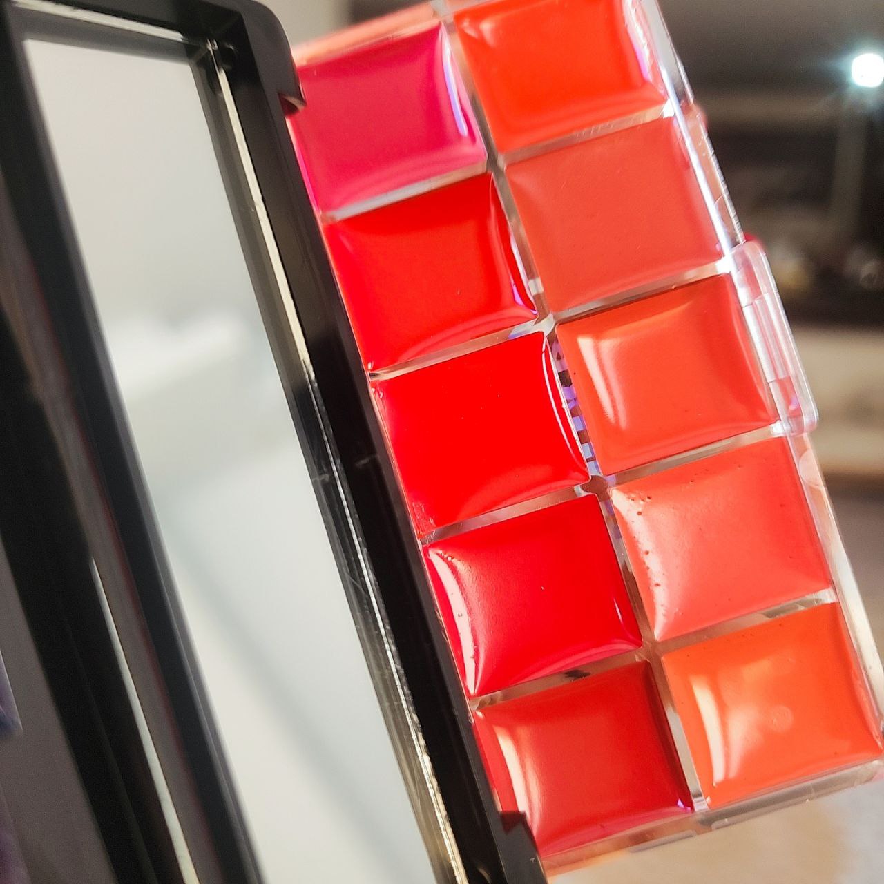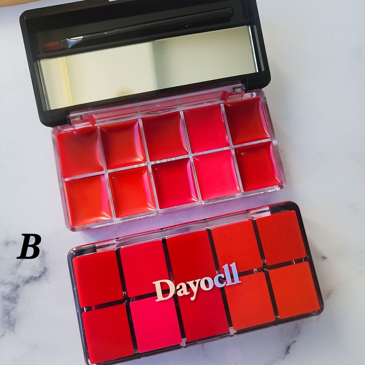 پالت رژ ۱۰عددی دایسل اقتصادی قابلیت ترکیب رنگ ها دارای براش دارای آینه بافت سبک و نچرال روی لب جلوه روی لب نه مات نه خیس (طبیعی) برند کالیستا پالت به صرفه رژلب