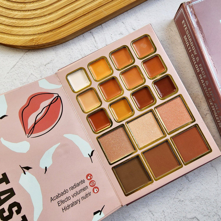 و دارای ۷۸ رنگ سایه مات ومخملی و شاین و رژگونه و هایلایتر و کانتور و رژ