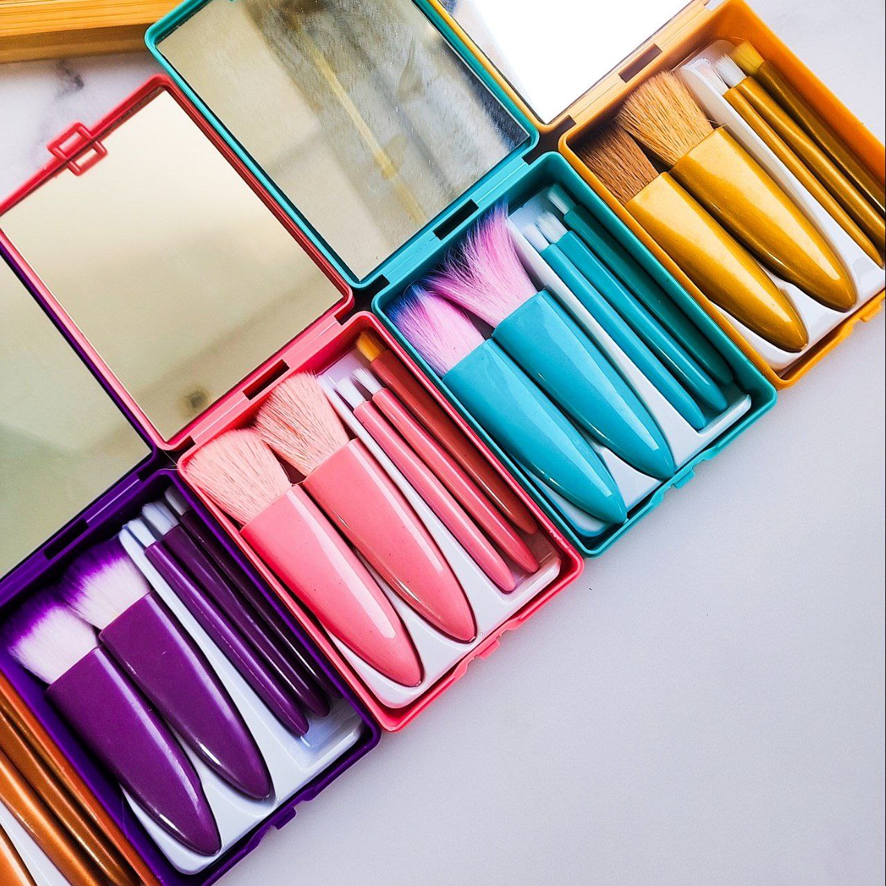 ست براش مسافرتی جمع‌وجور ۵ عددی با آینه داخلی